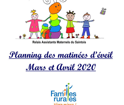 Voici le planning des matinées d’éveil pour les mois de mars et avril 2020 :