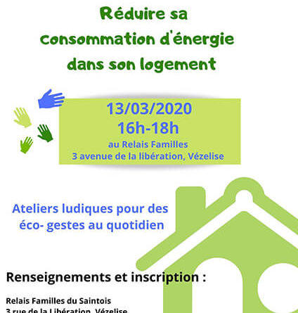 Le 13 Mars 2020 de 16h à 18h l’association Relais Familles du Saintois propose des ateliers ludiques pour des éco-gestes au quotidien pour apprendre comment réduire sa consommation d’énergie dans son logement.