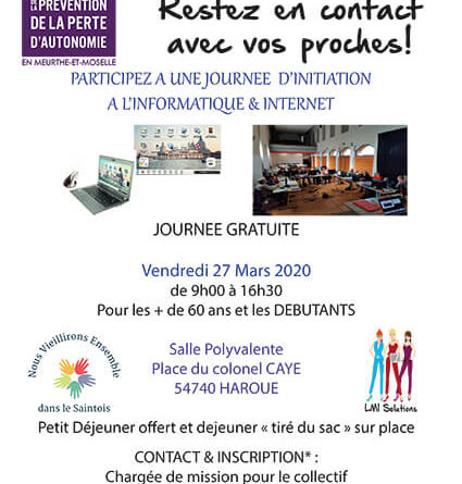 Suite au succès rencontré par la précédente journée d’initiation, le Collectif “Nous Vieillirons Ensemble dans le Saintois” et LMI Solutions proposent une nouvelle journée d’initiation à l’informatique à destination des débutants ayant + de 60 ans :