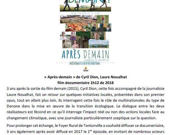 L’entrée est libre et le film “Après-demain” de Cyril Dion sera projeté avant présentation d’initiatives locales et débat sur la transition écologique.