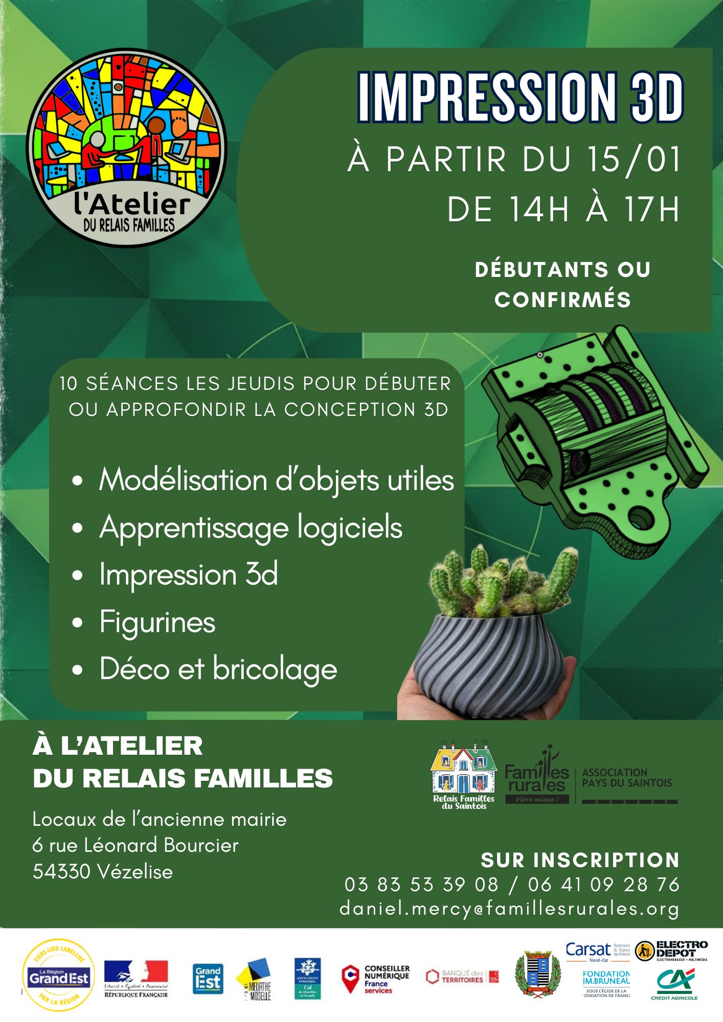 Prochain stage de création et modélisation 3D à l’Atelier du Relais Familles